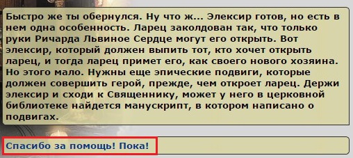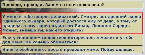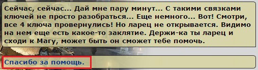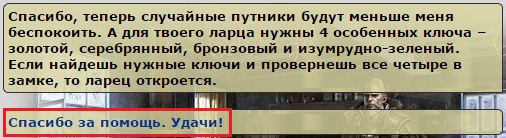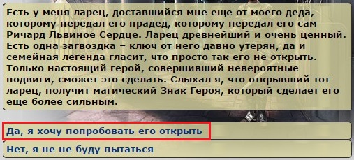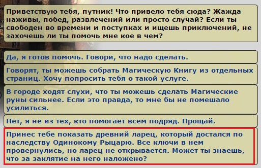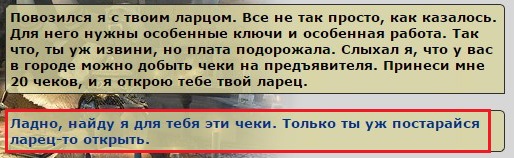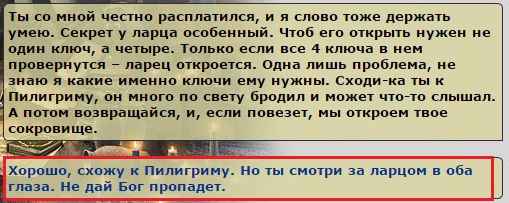 В инвентаре у вас появится Ларец, а в состоянии появится следующий шаг квеста: