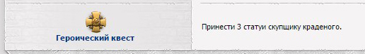 Героический квест состоит из нескольких этапов, о которых мы поговорим ниже. Выполнив этот квест вы получите красивый значок в инфе персонажа и +1 бал к комплекту уников. То есть если у вас 5 уников, а для первого бонуса от комплекта нужно иметь 6 уников и у вас пройден этот квест, то вы будете иметь комплект из 6 уников и соответственно бонус за него. Так же этот квест даёт возможность собрать комплект из 13 уников и получить Платиновый бонус, который никаким другими образом получить невозможно. Прочитать про бонусы уников можно в библиотеке OldBK