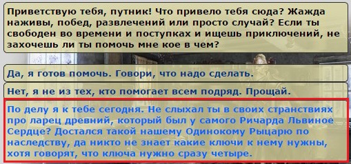 Что бы взять квест нужно отправится в Замок одинокого рыцаря и поговорить с Одиноким рыцарем:
