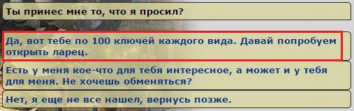 Четвёртый этап квеста: Принести по 100 ключей № 1 , №2 , №3 и №4