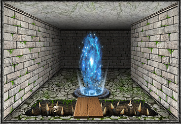 Попадается в одностороннем проходе с той стороны, откуда нельзя шагнуть. В этом месте мы сможем наполнить водой наши простые факелы (проверяется)