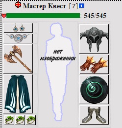 Футболка Учителей (мф), Плащ героя, Наборные латы (мф) 5 Подгонов, Топор Варвара заточен на +5, Шлем Отчаяния (мф) желательно 5 Подгонов, Перчатки Дракона (мф) желательно 5 Подгонов, Щит Бездны (мф) желательно 5 Подгонов, Сапоги Оруженосца (мф) желательно 5 Подгонов, Ожерелье Купца (мф) желательно 5 Подгонов, Серьги Ночной Звезды (мф) желательно 5 Подгонов, 3 Кольца Лесного Духа (мф) желательно 5 Подгонов. |