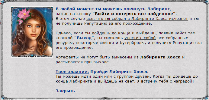 По достижению 4-го уровня нам будет предложено выполнить квест на прохождение Лабиринта Хаоса