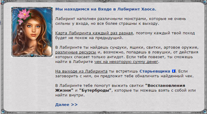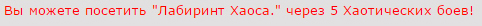 Что бы посетить Лабиринт хаоса Вам нужно иметь минимум 5 хаотических боёв. До 7 уровня их очень трудно получить, поэтому вы можете не ходить до 7 уровня или же использовать Малый свиток «Пропуск в Лабиринт», который сбросит все условия посещеня Лабиринта хаоса.