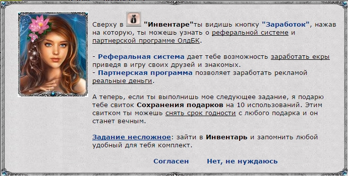 По достижению 3-го уровня нам будет предложено выполнить квест на получение свитка Сохранение подарка 10 - выполняем его: