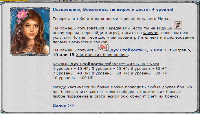 Ну а пока мы ждем появления Монстра, продолжаем участвовать в «Физических» /«Хаотических» поединках. Статы со всех апов распределяем в ловкость(для уворотов) или в интуицию(для критов).