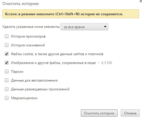 - Нажать комбинацию кнопок ctrl+shift+delete в открытом окне браузера