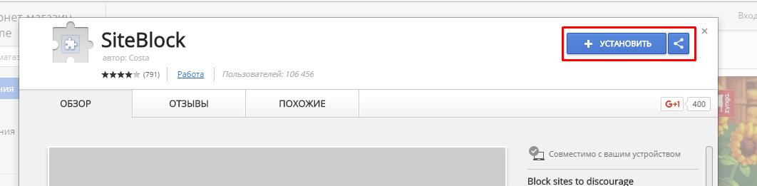 В поиск вбиваем BlockSite нажимаем поиск и устанавливаем расширение