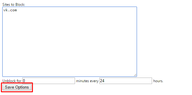 и добавляем сайт,который хотим блокировать при открытии (сайт добавляем без www. и http/: , как на примере) и нажимаем "Save Options"