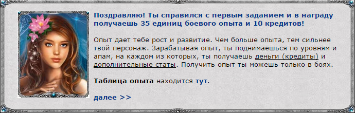 Внимание! За выполнение задания вы получили 35 опыта, 10 кредитов