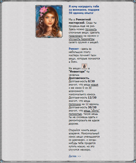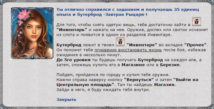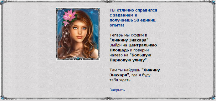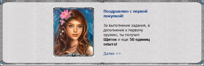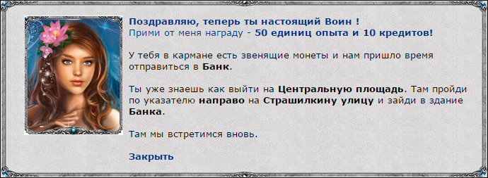 После каждого успешно пройденного задания, нас будут встречать новые диалоговые окна с новыми поручениями и, конечно же информация о награде за проделанные манипуляции.
