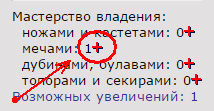 Следующим нашим заданием будет распределение харакретистик владением оружием. В зависимости от того, какое оружие вы приобрели и с которым планируете в дальнейшем проводить бои, то мастерство владения соответственно и повышаем.