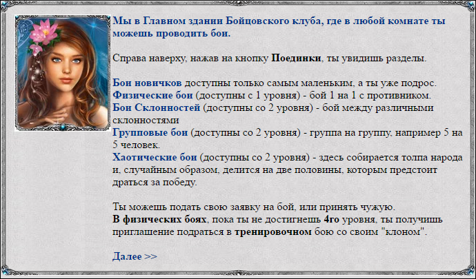 Далее выполняем указания нашего Гида и одеваем все вещи, которые у нас есть: Меч, Щиток и Рубашку и заходим в одну из четырех Комнат Новичков, которые находятся в Здании Бойцовского клуба.
