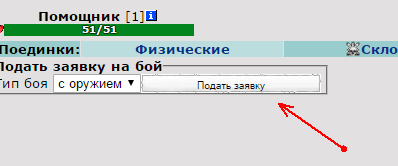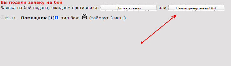 Нажимаем на кнопку "Поединки" и выбираем закладку "Физические", где подаем заявку на поединок и не дожидаясь противника, жмем кнопку "Тренировочный бой" (поединок с вашей точной копией):