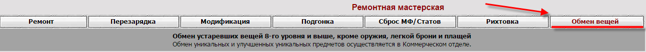 Так же, не забываем починить уники и арты перед обменом, иначе коммерческий отдел не увидит вещь для обмена.