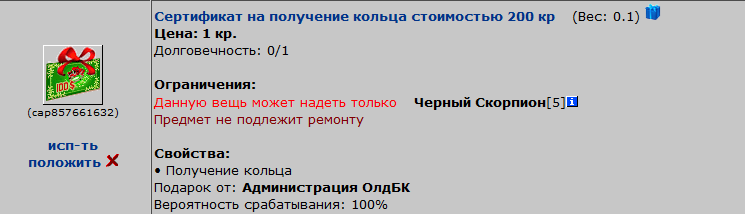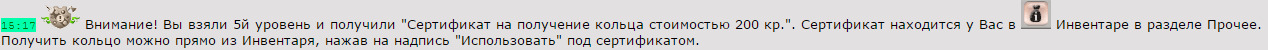 За взятие Пятого уровня Вы получаете сертификат на кольцо