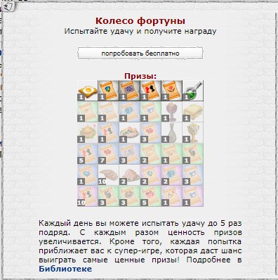 Второй бросок дает возможность выиграть призы из первых 12-ти лотов. Стоимость игры 50 кр.