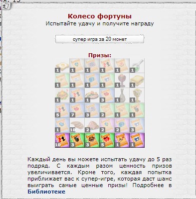 Ассортимент и количество призов может меняться каждые сутки. Принять участие и дойти до супер-игры может каждый персонаж раз в сутки.
