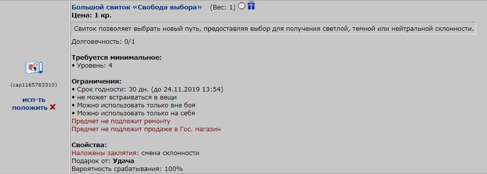 Для персонажей 12+ уровней у Торговца Галиаса доступно задание «Осознанный выбор», выполнив которое, каждый сможет получить Большой свиток «Свобода выбора». Свиток дает возможность выбрать новый путь в Светлой, Темной или Нейтральной склонности.