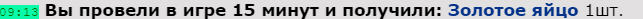 Кроме этого, при активированной курице, каждые 15 мунут проведенных онлайн, вы получите одно из 2-х видов яиц: Золотое или Простое.