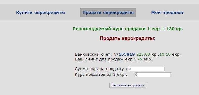 который разделён на три части: Купить еврокредиты, Продать еврокредиты и Мои продажи.Давай разберём всё по порядку.