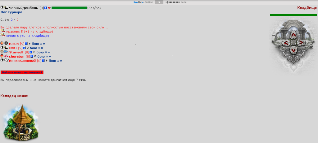 Выход из турнира через кнопку Выйти и ничего не получить на Кладбище (до победы или проигрыша команды) - 3 часа и травму.