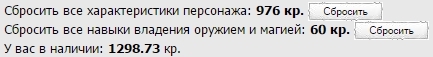 Перекидывать характеристики можно как по одной единице, так и сбрасывать их целиком одной кнопкой. Характеристики и навыки, при сбросе их целиком, имеют разные кнопки и разую стоимость. В обоих случаях вы получается неизлечимую травму на несколько минут:
