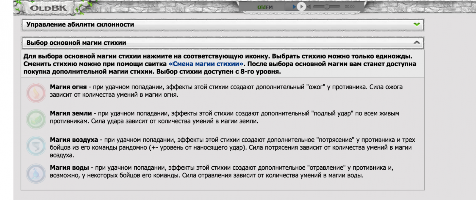 В былые времена Магия стихий присваивалась персонажу при регистрации, в зависимости от знака зодиака. Но это кануло в лету и в настоящее время, каждый персонаж волен сделать сам свой выбор, какая из магий ему по душе.