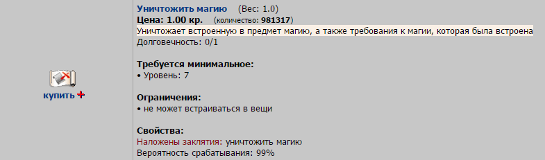 Если по какой-либо причине необходимо удалить встроенную магию, то это можно сделать специальным свитком, приобрести который можно за символическую цену в Государственном магазине.
