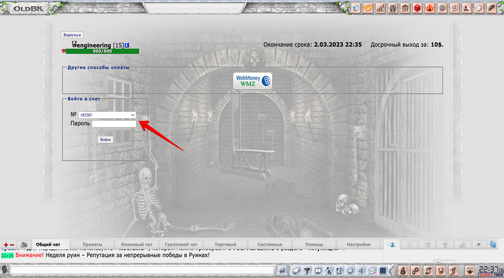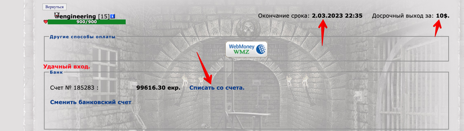 3. Далее мы видим срок наложения хаоса и стоимость досрочного выхода. Для оплаты штрафа - нажать списать со счета