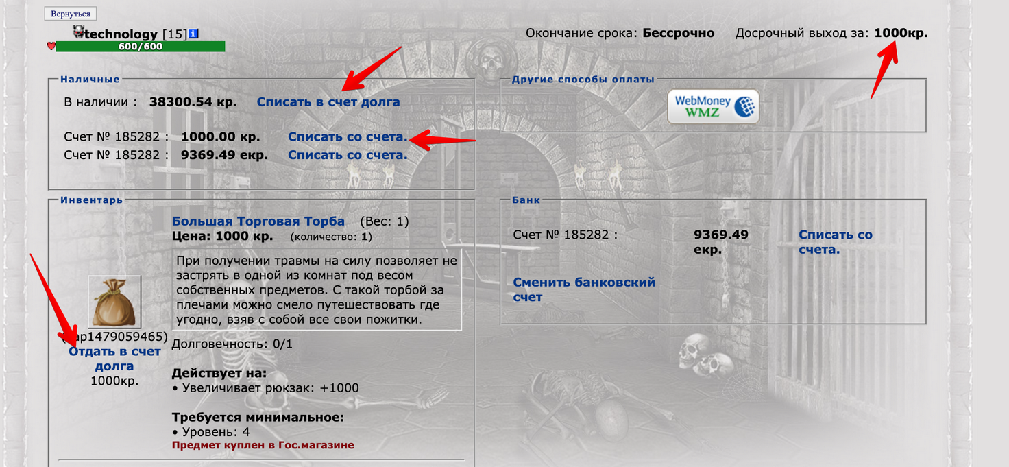 4. Если у вас бесрочный хаос по делу, то в некоторых случаях есть возможность выйти из него погасив задолжность указанную в деле и в счете банка. Также есть возможность погасить долг вещами из инвентаря. Данные средства поступают автоматически на Повелителя багов.